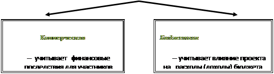 - Коммерческая (финансовая) эффективность, учитывающая финансовые последствия реализации проекта для его непосредственных участников