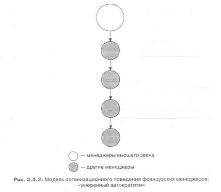 Французский язык долгое время был признанным языком дипломатии. Особая точность (по сравнению с американским английским и другими языками) этого языка оказала влияние на поведение менеджеров и методы управления организацией. Точность и красота языка, с одной стороны, придают особую тональность в общении людей, воспитывают уважение к логике, рациональности и вниманию к деталям, с другой — порождают индивидуализм и самоуверенность. Следует отметить, что последние качества нередко снижают эффективность менеджмента. Французы, как правило, плохо работают в команде менеджеров. Внутри самой Франции это качество уравновешивается характерной для менеджмента сильной централизованной властью (рис. 3.4.2).