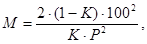 где М – объем выборки или число моментных наблюдений, К – приблизительный удельный вес затрат рабочего времени на выполнение изучаемой работы или приблизительный удельный вес времени работы оборудования в долях секунды (его величина берется по результатам ранее проведенных наблюдений или принимается ориентировочно на основе отчетных данных), (1-К) – удельный вес перерывов или простоев, т.е. вероятность застать рабочего или станок в бездействии, Р – заранее установленная точность результатов наблюдения, т.е. допустимая величина относительной ошибки результатов наблюдения (в практике изучения рабочего времени она берется в пределах 0,03 – 0,1; a - коэффициент, связанный с доверительной вероятностью невыхода ошибки Р за установленные пределы.