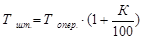 К — сумма норматива времени на обслуживание рабочего места (Тобсл.) и норматива времени на отдых и личные надобности (Тотл) (см. табл. 3.1).