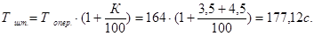 3. Установим норму штучного (Тшт.) времени на выполнение хронометрируемой операции и сменную норму выработки, исходя из условия табл. 3.1.