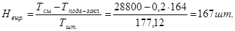 Учитывая, что сменное время – 8 часов (28800 сек.), получили норму выработки 167 деталей.