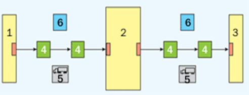 Рисунок 2. Схема расположения складов в макрологистической системе. 1 - склад поставщика. 2 - склады производителя. 3 - склад потребителя. 4 - склады посредников: оптовых, мелкооптовых, розничных. 5 - склады транспортных организаций. 6 - склад - предприятие.